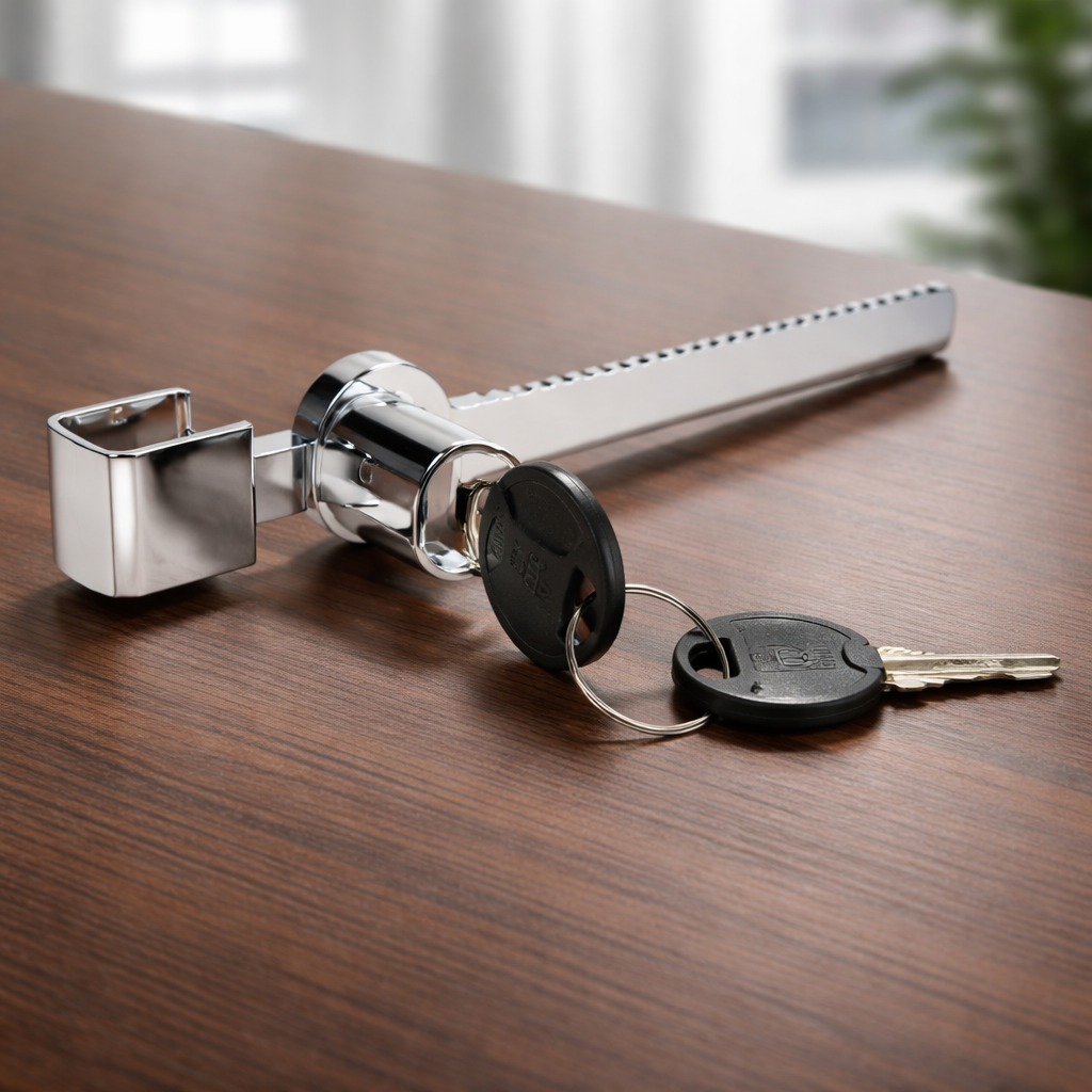 La Chapa para Vitrina Tipo Cremallera – Serrucho es la opción ideal para asegurar vitrinas de vidrio con puertas corredizas, ofreciendo un cierre firme y confiable 🔐🪟 Fabricada en aleación de zinc de alta resistencia, garantiza durabilidad y un excelente desempeño en entornos comerciales ✨ Su diseño tipo serrucho permite un ajuste preciso en dos puertas corredizas de vidrio, con un tamaño práctico de 2 cm x 14 cm x 2 cm, brindando seguridad sin afectar la visibilidad de los productos 🔒 El empaque incluye 1 chapa vitrina tipo serrucho y 2 llaves, lista para instalar y proteger tus exhibiciones con total confianza 🔑🛍️